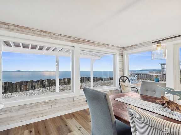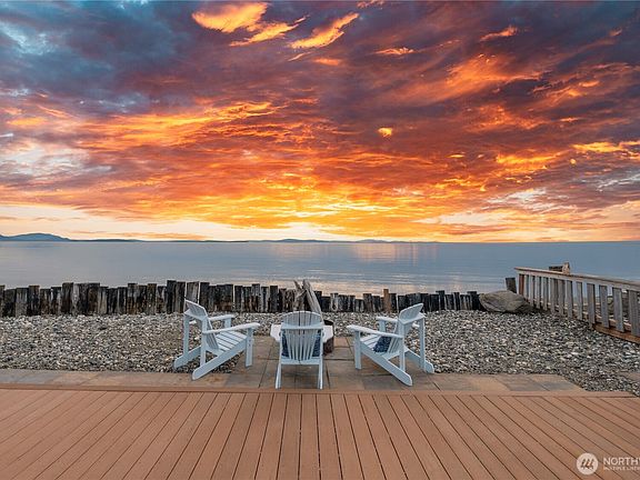 Welcome to your beachfront entertainer’s paradise in Sandy Point! This updated 4BD/2.5BA west-facing gem boasts a Chef's kitchen w/stunning views of the Islands, custom finishes, abundant natural light & beachy vibes. The main-floor primary features an ADA bath & sauna. Upstairs, the guest rooms enjoy views of Mt Baker & the 2nd primary suite has sweeping island vistas & private deck. A spacious studio/flex room offers potential for a second unit (buyer to verify). Entertain in style on the generous patio & watch marine life & breathtaking sunsets from your own backyard. The bonus sitting room, automatic storm shutters & thoughtful updates complete this exceptional coastal retreat. The hard work is done and ready to enjoy this summer!