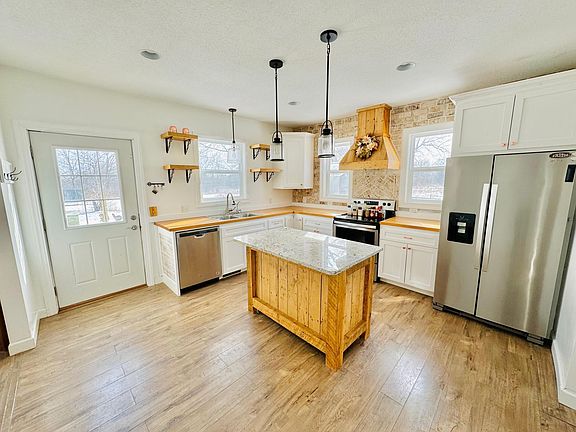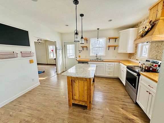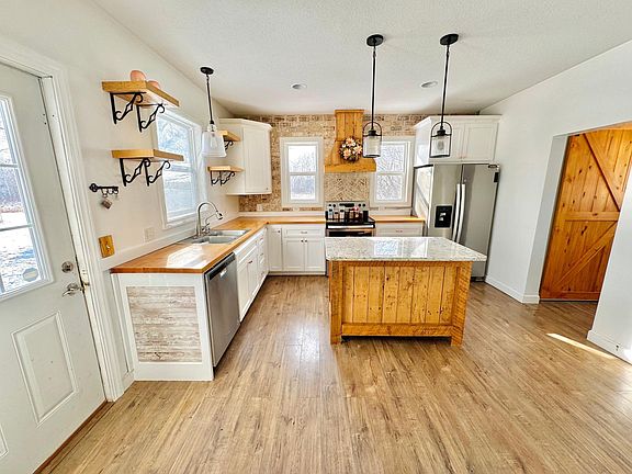 Unique farmhouse with all the updates and amenities. Three bedroom, two bath, beautiful wood burning stove. Included is a built-in 48 gun safe. Whether you are a nature lover or looking to start your own hobby farm, this home is situated on over 2 beautifully, wooded acres of privacy. It is flourishing with all kinds of trails and wildlife, bear and deer, owls and pheasants & more. Just a 5-minute drive to town and the Braham school system. Move in ready. Updated appliances, siding roof and windows and more. Granite countertops in the kitchen. Main floor half bath with laundry.