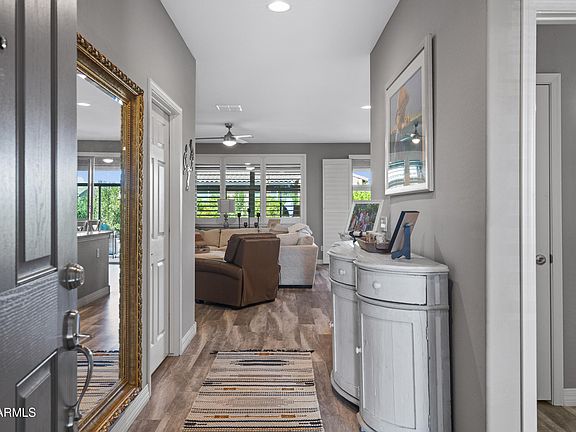 Exquisite Villa home on a corner homesite in the Award Winning Active Adult Community of Province! Beautiful great room floor plan with two full bedrooms, two bathrooms and an Arizona room. Gorgeous gourmet kitchen with custom cabinetry, granite countertops, a spacious kitchen island, separate pantry and stainless steel appliances including a gas cooktop and double ovens. Beautiful plantation shutters throughout along with luxury vinyl plank floors with new carpet in the bedrooms and the Arizona room. Spacious primary bedroom and bathroom including espresso cabinets, a rain glass shower enclosure at the shower and a walk in closet. The Arizona room is useable all year long with a mini split unit and electric blinds providing additional living space. Your backyard oasis has mature .. landscaping offering wonderful privacy with an extended patio, artificial turf and a separate paver patio on the side. Additional features in this home include: soft water system, built in cabinets above the washer and dryer, overhead storage at the garage, sunscreens and gutters.