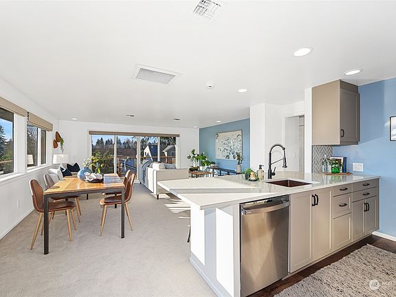 Perched upon a corner lot with magical light and views of Puget Sound and Vashon Island, this sweet "nest" delivers crisp and clean one level living. Enormous living space features SW exposure through big picture windows and sliders to the west deck. Freshly remodeled kitchen with stainless steel appliances and marble countertops. Big primary bedroom + 2nd bedroom which can double as home office. Updated bathroom. Front entry with big closet + washer/dryer. Ample outdoor patio space and storage. Rapid Ride bus line makes a commute to downtown a breeze. Live an idyllic West Seattle lifestyle within blocks of all the vibrant hustle and bustle of the popular Alaska Junction.