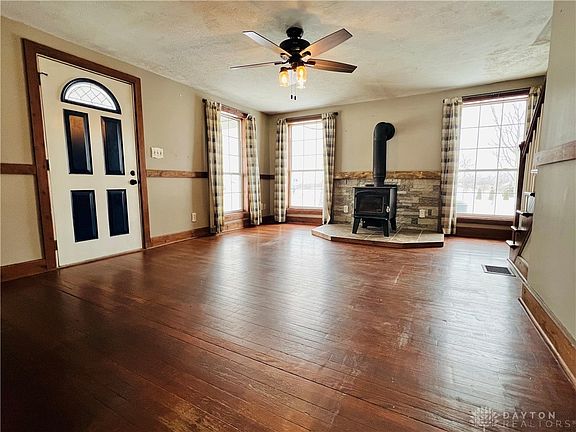 Welcome Home to this charming 2,448 sq.ft. country farmhouse on 3/4 acre in Springboro School District. 3 roomy bedrooms and and 2 full baths. Primary has adjoining bath, his and her closet, lg. walk-in closet with window and cathedral ceiling. Spacious Laundry area. Large back deck for entertaining. Large 2 car garage with wood stove and 10x12 shed. Updates are roof/2024, water heater/2024, siding/2024, dishwasher/2021, hvac/2020, furnace2020.
