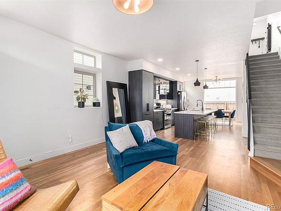 Welcome to your dream home! This delightful end-unit showcases a charming interior with warm wood floors inviting you into a bright great room for lively entertainment and relaxation. Step into the sleek kitchen, where custom cabinetry blends seamlessly with top-of-the-line stainless steel appliances. The French doors open from the dining room to a small private yard, adding extra convenience for any dog owner and a perfect spot for your summer grilling. The second floor includes a bonus open area large enough to be used for an at-home gym, extra storage, or a cozy relaxation nook. The property includes not one but two large primary bedrooms. The second floor primary bedroom features a chic ensuite with dual vanities, custom walk-in shower, separate water closet, and a spacious walk-in closet. The third floor hosts a second bonus area, perfect for your work-from-home office. The second primary bedroom on the third floor also features its own ensuite and walk-in closet, and is versatile enough to be used as a second bedroom or transformed into a media room, adapting effortlessly to your lifestyle needs. Extend your living space to the outdoors with a private third floor balcony. Each of the three floors is controlled by its own thermostat, and the majority of the windows are fitted with custom window coverings, including high-end Shade Store shades in the living room and second floor primary bedroom. The property also includes its own garage, with private access from the gated backyard, adding convenience and security for your vehicle and storage needs. Located just two blocks to Alamo Drafthouse and Starbucks, three blocks to Sloan’s Tap and Burger, and four blocks to Sloan’s Lake and the newly opened Cholon and Gusto restaurants at the Lakehouse, this home offers both tranquility and the excitement of urban living. Come and experience the style and convenience in this exquisite unit that's waiting just for you!