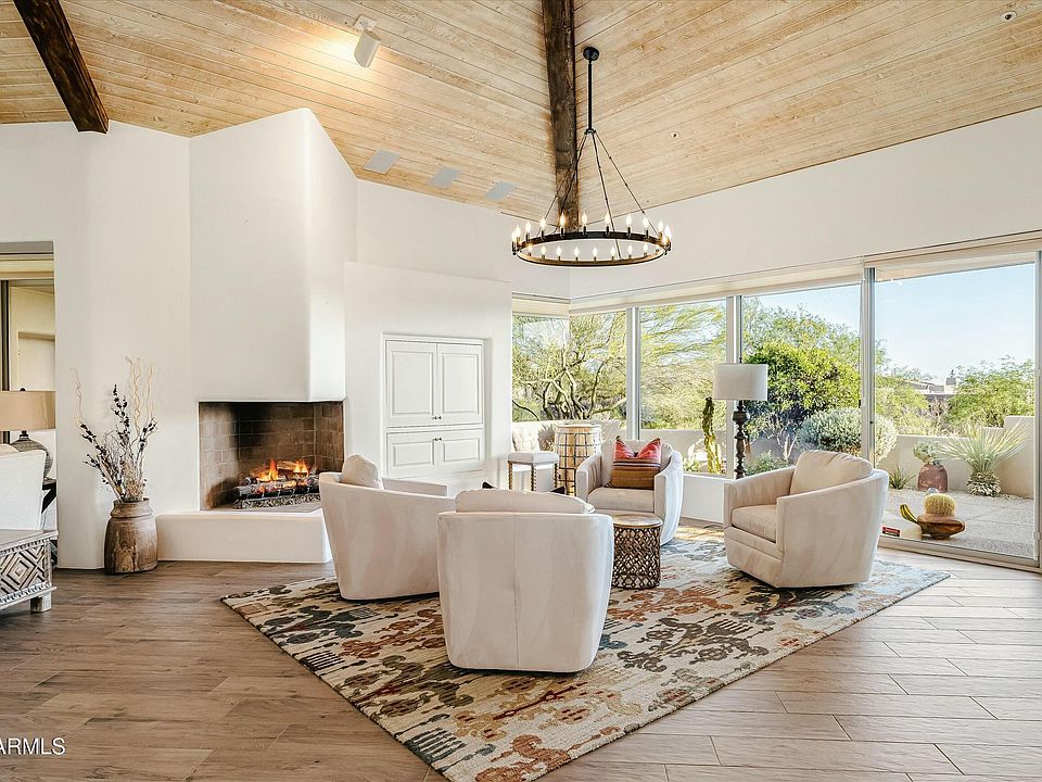 NEWLY REMODELED desert oasis nestled in the heart of Desert Mountain. As you step inside, you're greeted by soaring ceilings, cozy fireplace, bright open spaces, walls of glass and a seamless flow of living spaces that effortlessly connect the indoor and outdoor environments. The just completed chef's kitchen features high-end stainless steel appliances, beautiful cabinetry, a spacious island and sleek countertops — perfect for preparing gourmet meals or entertaining guests. Enjoy the ultimate in comfort with not one, but two luxurious private primary suites, each offering spa-like bathrooms and spacious walk-in closets. Perfect for family and friends. Step outside to your private backyard retreat complete with sparkling spa, fireplace and multiple seating areas — all set against the back drop of stunning Sonoran Desert vista with ample patio spaces for alfresco dining, lounging and entertaining. Located just minutes from all Desert Mountain amenities and hiking trails, this home provides the perfect balance of tranquility and accessibility. Wait list apply for Desert Mountain Club membership. The property has room to allow for a pool and additional bedroom or casita with DM and City of Scottsdale approval.