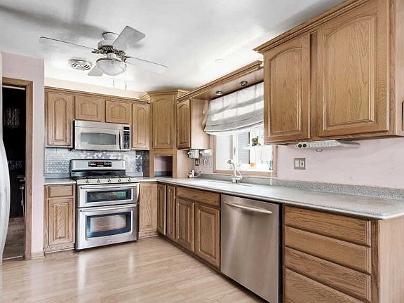 Great opportunity in Top Rated LaGrange Schools & Lyons Township High School within 1 mile to vibrant downtown LaGrange & Brookfield Metra (25 min express train to Chicago). All brick 3 bedroom, 1 1/2 bath Tri-Level with fully fenced backyard. Large living room offers hardwood floors & bay window, Sun-Filled eat-in kitchen with bay window, great cabinet space, Corian countertops, stainless steel appliances, window box over sink. 3 Bedrooms on 2nd floor all have HARDWOOD UNDER CARPET in 2 beds and overhead lighting or ceiling fans, full bathroom with tub/shower. Lower level family room with half bath, laundry room with utility sink, exterior access door to yard & large crawl space. Expanded concrete side driveway, 2 1/2 car detached garage with newer garage door. Nice size private fully fenced backyard with patio. Great tree-lined street, Easy access to several expressways (I55,290,88,294), both airports, Brookfield Zoo, several forest preserves, shopping & dining. Great location & historic low interest rates makes this a great investment. SOLD 'AS IS' by a Trust. Conventional or Cash offers only. Highest & Best offer due by 5pm Sunday, Aug 16th