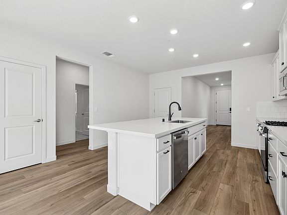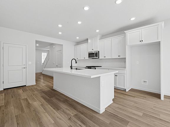 Discover modern living in this brand-new Tri Pointe Home, the two-story Riverblossom at Montelena Plan 3. Offering 4 bedrooms, 3 bathrooms, and a 2-bay garage, this well-designed floor plan blends comfort and functionality. Flooring throughout includes luxury vinyl plank, carpet, and iron matte tile. Step into the bright and open Great Room, seamlessly connecting the living, dining, and kitchen areas. The kitchen showcases a GE stainless 3-piece appliance package, white cabinets with matte black hardware, quartz countertops, and Color Wheel Classic 0190 Arctic White Glossy tile backsplash. A downstairs bedroom with full bath off the foyer provides flexible living options. Upstairs, a spacious loft and convenient laundry room add practicality. The primary suite is a private retreat with a generous walk-in closet, dual sinks, and walk-in shower. Two secondary bedrooms and another full bath complete the second floor. As part of Tri Pointe's LivingSmart® program, this home features energy-efficient, eco-conscious designs. Solar options are available for purchase or lease. This homesite is move-in ready today!