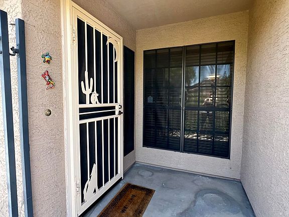 Beautifully maintained & move in ready! Coveted end unit, siding to lush tree-lined arroyo & just steps to the pool with extra parking. Charming gated courtyard entry & security screened front door, bright interior with a large east window & 2'' blinds throughout. Updates include door way into kitchen opened, some dual pane windows, Arcadia door, sliding glass shower door, reverse osmosis, water heater, faucets & toilets. The Townes has 2 private community pools in addition to the Mountain Park Ranch amenities that include; tennis, pickleball, parks, playgrounds, community pools with 1 heated pool, all within walking distance. Newly paved streets, newer stucco exterior & roof underlayment replaced in 2019.
