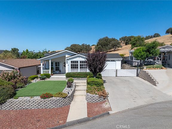 This is the one! Come to this inviting 3 bedroom, 2 bath home nestled on a tranquil cul-de-sac with minimal traffic, in the gated community of Heritage Ranch Village, conveniently located near Paso Robles. Recently upgraded with a new roof and new carpeting throughout, this home also features artificial lawn in the front yard and tasteful landscaping. The thoughtfully designed floor plan offers a well-equipped kitchen with ample storage, conveniently placed appliances and a center island. Enjoy your morning coffee either in the sunny breakfast nook or the appealing front porch, both with picturesque views. Curl up by the fireplace in the living room for cozy winter evenings. The spacious master suite includes a sizable walk-in closet and a generously sized ensuite with 2 sinks and a soothing soaking tub. From the master suite, you can access a covered deck, steps from your private pool with a refreshing waterfall feature. Then move on to the upper deck overlooking the pool and greenbelt area. Outside is a large, gated driveway and a 2-car attached garage perfect for all your lake toys. This home is ideal as a primary residence or your private secondary retreat, and the community amenities include 2 pools, parks, tennis and pickleball courts, and private lake access.