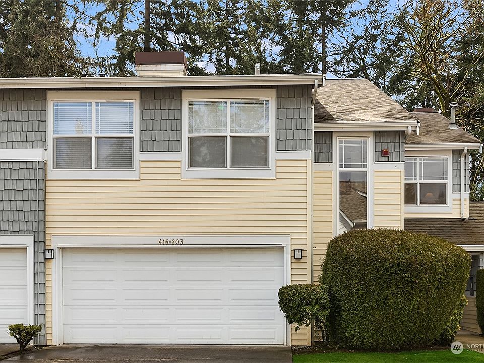 This lovely Bothell townhouse lives like a single family home with it's private, covered entry and attached two-car garage. Freshly painted interiors, and tucked away on a quiet street. With Shelton View Forest as a protected backdrop, you enjoy a natural/green setting and plenty of privacy. Flooded with natural light from walls of windows and vaulted ceilings, the open floorplan is highlighted by interesting architectural details that both define spaces and lives large. The generous kitchen has plenty of cupboard and pantry storage, and boasts both an eating bar and formal dining for entertaining. Conveniently located in the Canyon Park area of Bothell, you are just minutes away from I-405, shopping, restaurants and public transit.