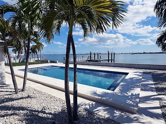 NEW LUXURY RENOVATION COMPLETED IN 2025, OFFERS THE BEST OF BOATING AND THE BEACH! Located in the premier community of Brightwater Beach Estates, this elegantly updated 3 bedroom, 3 bath, 2 car garage mid-century modern residence is supported by a huge brick paver driveway and features fabulous vaulted ceilings, gorgeous luxury materials, a terrific split-bedroom open floorplan, and hurricane impact windows and doors throughout. Stunning open water views of Boca Ciega Bay are yours from your beautiful living room; gorgeous water vistas by day and dazzling city lights by night! The open concept kitchen provides superb "waterfall" quartz counters, fine coastal-white cabinetry, brand-new stainless-steel appliances (including a dedicated Scottsman icemaker), a large center island bar and indoor laundry. Living and dining areas are supported by an exquisite dry bar with wine/beverage chiller and generous storage. Two spacious bedroom suites overlook the water and enjoy beautifully-finished full baths. Step out back to your huge paver deck with brand-new Pebbletech pool and spa, with LED lighting and saltwater system all fully automated and remote controlled. Your composite dock provides a 16,000lb boat lift and boating water that's 5+ft deep at low tide. Located in the heart of St. Pete Beach, one of Trip Advisors top beaches in America, you are an easy 5-minute stroll to its powder-soft sands, fine dining, shopping and entertainment. From your dock, you're a short 12-minute boat ride to Shell Key and the open Gulf! An outstanding location, convenient to downtown St. Petersburg, Tampa International Airport and Sarasota. A rare leasing opportunity. Note: Landlord/Lessor is a realtor.