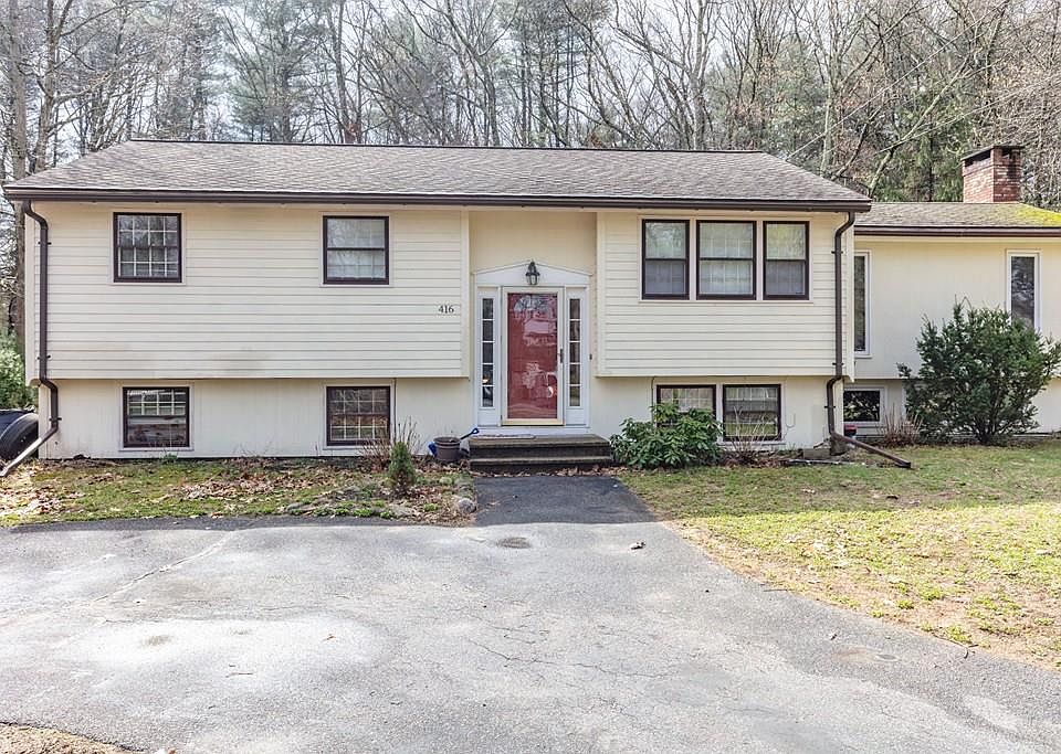 This 3 bedroom, 1 bath raised ranch is located in convenient South Chelmsford and is priced to sell! Step into the living room with newer hardwood flooring and large window that lets the sunshine in and provides seasonal water views of Hart Pond. Open concept with living room, dining area and kitchen with sliders to new oversized deck. French doors leading to a family room with beamed, cathedral ceiling and wood burning fireplace. This is a great place to entertain or enjoy a relaxing evening. Hardwood flooring throughout this wonderful home. Updated 200 amp electrical panel! Summer is coming and this home has an above ground pool! Nice big back yard for playing in, or cross the street to bike or walk the Bruce Freeman Rail Trail. Other area amenities include Butterbrook Golf, Hart Pond beach, shopping and restaurants in nearby Chelmsford Center or neighboring Westford, or short drive to NH shopping!