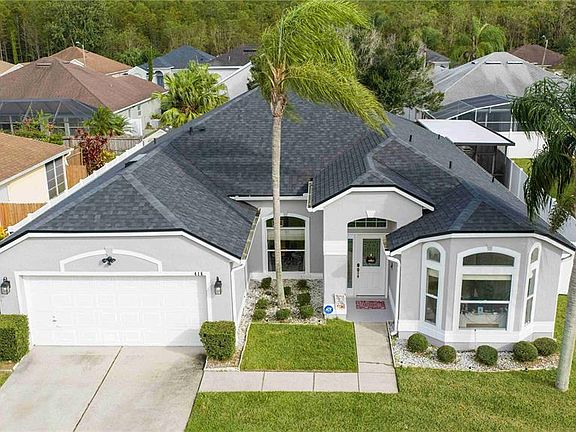 Ready to Move In! Beautiful 4-bedroom, 2.5-bath home with a screened pool, terrace, covered patio, and fenced yard. Roof and central A/C remodeled in 2023, with the interior fully updated in 2025. The kitchen is modern and all-white, featuring elegant cabinets, stainless steel appliances, and a breakfast bar open to the family room—perfect for entertaining. Bright and airy spaces with neutral colors, high baseboards, and tray ceilings in the living and dining areas add elegance and a sense of spaciousness. The master suite includes custom double closets, dual sinks, and a separate shower, while the front bedroom connects to the main bath, ideal for an office or nursery. Just steps away, a community park offers a pool, cabana, basketball and tennis courts, and a children’s playground, providing fun for the whole family. Conveniently located near major roads, shopping, and the post office. Located just 10 minutes from Orlando International Airport, close to top-rated schools, and featuring a beautiful pool area with a built-in grill.
