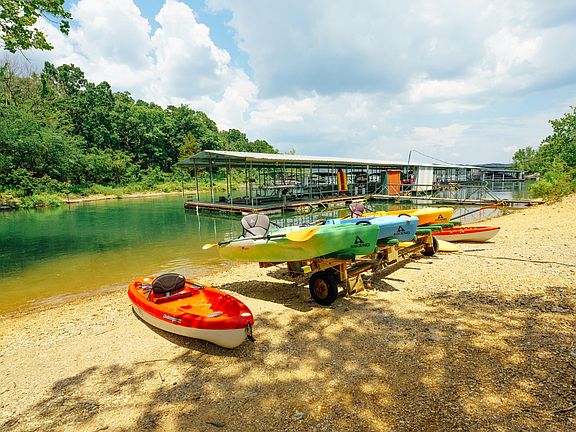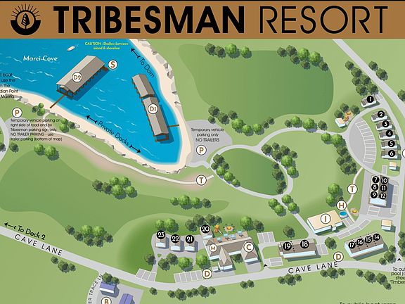 Welcome to Tribesman and Timber Point Resorts: 2 exceptional lakefront resorts on the picturesque Table Rock Lake in Branson, Missouri. Nestled in a prime location, this resort offers not only a serene lakeside escape but also convenient access to the vibrant entertainment of Branson & the thrilling adventures of Silver Dollar City Theme Park.This turnkey, established vacation destination is a dream come true for those seeking a flourishing hospitality venture. Resort includes 32 nightly rental lodges which includes 10 standalone 3 bedroom cabins, 5, 2 bedroom cabins, 5, 4 bedroom cabins, a duplex, 4-plex, & 6-plex. 2 owned boat docks with 38 slips, and an array of watercraft including 2 fishing boats, & 4 pontoons. Guests can embrace the ultimate lakeside experience. The resorts are equipped with everything needed for endless entertainment, from an indoor and outdoor pool, hot tub, custom playground, ninja course, zip line, fire pits, game room meeting facilities, and convenient amenities. Additionally, you'll find a large home with a basement, traditionally utilized by the groundskeeper, a garage, gas tank for golf carts, room for boat, and trailer parking, along with two large storage units, making this a versatile and complete investment opportunity. Resort has been through an extensive renovation which includes flooring, paint, hvac systems, cabinetry, furnishings, decor, appliances, roofs, water heaters, repainted pool with new windows, 2 dehumidifiers valued at $10K ea, pumps, sand filter, and more!