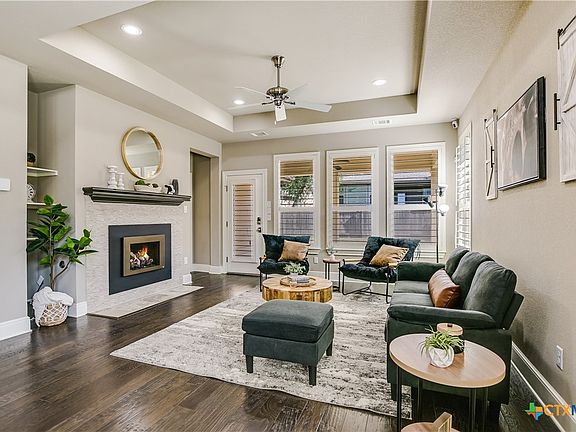 Lovingly upgraded and designed with longevity in mind, this beautifully appointed residence combines enduring quality with thoughtful design, set in the award-winning Teravista community of Round Rock, Texas. Before stepping across the threshold, the Owner can enjoy an HOA-MAINTAINED FRONT LANDSCAPING, full underground irrigation system, and a spacious covered porch overlooking the greenbelt. Inside, enjoy plantation shutters, Shaw Nottoway Hickory wood floors, tray ceilings, 8 doors, recessed lighting, and 7 colonial baseboards for a refined, welcoming atmosphere. The chefs kitchen offers a double oven, natural gas cooking, and elegant nickel-finished Torino lighting over River White granite countertops, while the primary suite retreat features a floating dual vanity and dual shower heads for spa-like comfort. Additional upgrades include motion-sensor lighting throughout, elongated dual-flush commodes, white pine windowsills, and RG-6 QS wiring. This home is as efficient as it is elegant, with vinyl frame insulated low-E3 windows, R-15 & R-21 cellulose-insulated walls, a Carrier Puron heat pump, and a Rennai tankless gas water heater all meeting or exceeding 2006 & 2009 International Energy Conservation Code standards. In Teravista, you'll find more than just a neighborhood you'll find connection, recreation, and community. There's a championship public golf course with multiple levels of memberships available, multiple swimming pools, scenic parks, over ten miles of hiking and biking trails, sports courts, and picnic areas. Regular community events bring neighbors together, while the convenient Round Rock location offers quick access to schools, shopping, dining, and major highways. This home offers the best of both worlds: timeless comfort inside and an unparalleled lifestyle outside.