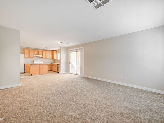 The beautifully refreshed 2-bedroom + loft, 1.5-bath home, offers the perfect blend of comfort and style. Spanning 1,271 square feet, this home boasts brand-new carpeting throughout, complemented by new baseboards and window coverings. As you step inside, you'll be greeted by an abundance of natural light that fills the open living spaces, creating a warm and inviting atmosphere. The loft area offers versatile space, ideal for a home office, additional living room, or creative studio. The kitchen and dining areas flow seamlessly into the spacious backyard, where you’ll find a patio perfect for outdoor dining, entertaining, or simply enjoying the serene surroundings. The backyard is a blank canvas, ready for your personal touch. Located in the sought-after Liberty at Silverado Ranch neighborhood, this home is close to schools, parks, shopping, and dining, making it an ideal choice for those seeking convenience and modern living.