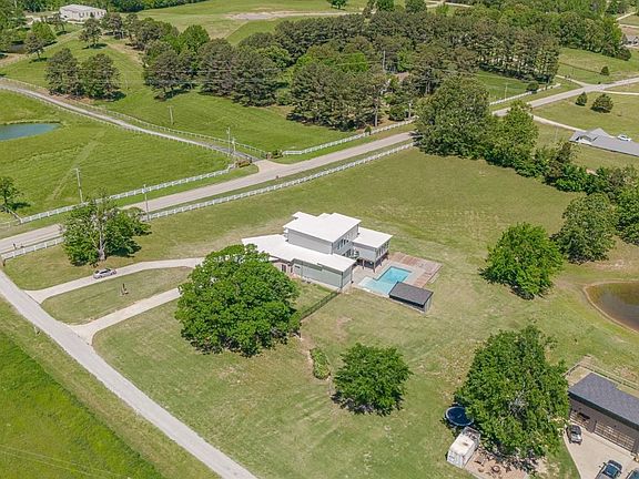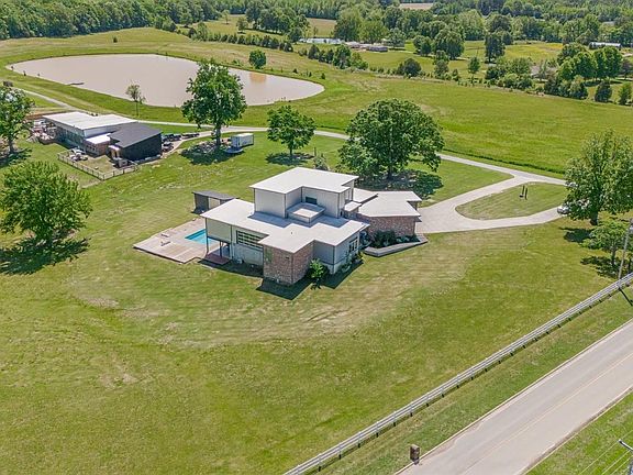Resting high on Crowley's Ridge, you will find this one-of-a-kind, industrial style, modern masterpiece. Boasting 3.49 acres, custom salt-water pool, pond view, all the upgrades, ample storage space, outdoor kitchen, 3 car garage, and so much more. Upon entrance you are drawn the space, the design, 24-foot ceilings, floating staircase, interior brick accent wall and the craftsmanship throughout. The main level has 5 bedrooms, 3 full bathrooms, an office, media room with projection screen, 2 living areas, 2 half bathrooms, open kitchen with walk in pantry and huge island with hibachi style grill. Up the modern industrial staircase you will find a loft with bathroom and access to the roof top which would be a perfect for an additional seating area or a place to work on your putting/driving skills. The master suite is massive with a walk-in closet, light up built-ins, its own laundry room specifically for the master suite, fireplace and brick accented wall. Downstairs is a full walk out basement with living area and full bath/ safe room .Step outside to enjoy the saltwater pool, covered patio, outdoor kitchen, outdoor shower, peaceful pond view, storage shed, and some of the best views. This home is perfect for someone who enjoys country living with city amenities. Priced to sell at recent market appraised value . Pre-Approval required prior to showing.