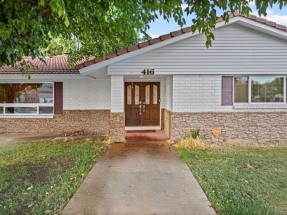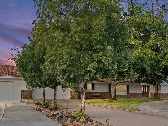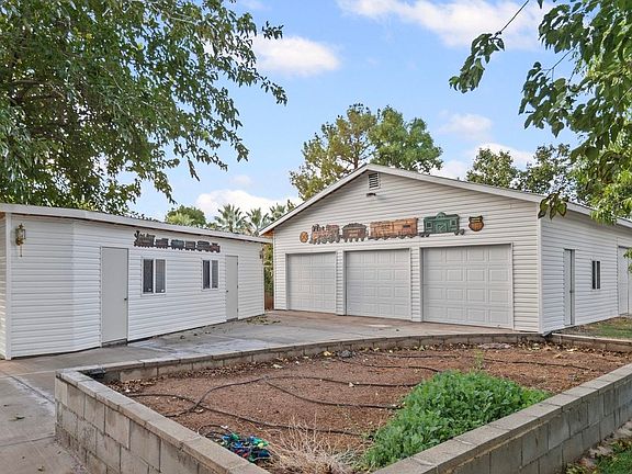 Car enthusiasts and hobbyists - Don't miss this rare find in the highly sought-after Bloomington Ranches neighborhood! This beautifully upgraded single-level home sits on acre and offers the perfect blend of comfort, space, and lifestyle. The designer remodeled kitchen showcases custom tilework and masonry finishes, while two fireplaces and oversized rooms create a warm, inviting atmosphere. The expansive attached 3 car garage space features an extra long bay that will house a long bed truck. The detached building features another 3-car garage in the front and an air conditioned shop in the back with a hydraulic car lift. Outdoors, enjoy horse privileges, mature fruit trees, 3 shares of irrigation water included, a newly built gazebo, and plenty of room to relax or entertain. With golf courses and trails just minutes away, this property offers the best of both recreation and convenience. Don't miss your chance to own this unique home with unmatched features and location!