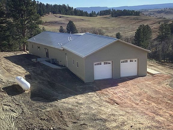 Scenic foothills property north of Hulett with 163 acres. Nearly new three-bedroom home in a country setting on Deer Creek Road with a nice mixture of wooded hills and open meadows. The home is situated in a hilltop setting with a pine forest to the north and is positioned to offer outstanding views of the surrounding countryside and the Deer Creek Valley. Custom built in 2020, the ranch style home has 2,280 square feet and includes 3 bedrooms and 2 full baths. The main bedroom has a walk-in closet and private bath with tile shower and separate tub. The other full bath is next to the two guest bedrooms. The comfortable design is open throughout the kitchen, dining and living rooms. The kitchen has hickory cabinets, snack bar, stainless steel appliances, laminate plank flooring, soft close cabinets and a handy walk-in pantry. Large south facing windows in the living room offer a nice spot to take in the view. The utility room next to the oversized two-car garage. The terrain includes rolling hills with pine and oak bur trees plus open meadows and hidden parks. Several draws run through the property and on the south side the property there are some hay meadows. Great wildlife habitat is provided in the oak thickets. A place for year-round residence or a Black Hills vacation getaway just a 30-minute drive from Devils Tower and access to Black Hills National Forest.