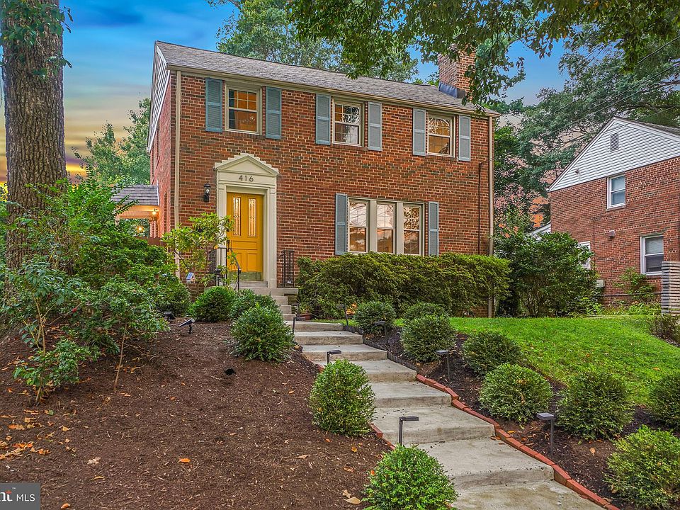 Welcome to 416 Deerfield Avenue—this thoughtfully expanded, beautifully remodeled Colonial is nestled in the friendly Sligo Park Hills neighborhood, just steps from playgrounds, parks, and trails. The main level features a light-filled living room with a fireplace and an open dining area that flows seamlessly into the chef’s kitchen. The gourmet kitchen boasts a stainless-steel appliance suite, quartz counters, a subway tile backsplash, gas cooking with a built-in griddle, and Shaker cabinetry with soft-close drawers. A main-level addition offers incredible versatility—it can function as a primary bedroom suite or a spacious family room. This area includes wood flooring, recessed lighting, a modern ceiling fan, and a generous attached bathroom with chevron-patterned tile and an incredible walk-in shower. A mudroom/drop zone with a closet and shoe storage, along with a powder room, completes the main level. Upstairs, you'll find three sunlit bedrooms and a full bathroom, including the tasteful primary bedroom with a walk-in closet. All three bedrooms feature rich wood flooring. The lower level offers a recreation room with recessed lighting, a guest room/office, and a large laundry/storage room. Outdoors, relax on the sizeable brick patio, enjoy the lush, fenced backyard, and take in the complementary landscaping. A large shed provides ideal storage for bikes and lawn equipment, and there’s also a fabulous jungle gym. Enjoy life in close-in Silver Spring, where charm and convenience meet. The neighborhood offers a welcoming sense of community, just steps to the popular restaurant Zinnia and Whole Foods, along with easy access to Sligo Creek Trail, plus nearby shopping, restaurants, and entertainment in both Downtown Silver Spring and Takoma Park. Just over a mile to Silver Spring Metro Station, and close to multiple bus lines - you’ll love the refinement, ease of access and lush setting of this home!