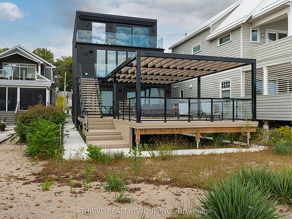 Nestled on the sandy shores of Lake Erie, this newly built custom home offers a blend of modern luxury and cottage living. Just a short walk to downtown Port Stanley, with easy access to local shops, restaurants, and the vibrant beach town atmosphere while enjoying the privacy of your own lakefront retreat.This three-storey home spans over 3,500 square feet and features 5 spacious bedrooms, and 4.5 bath, including an primary suite with a 5-piece ensuite, walk-in closet, and wet-bar. The layout also offers in-law capability and multiple entertainment rooms, making it ideal for family gatherings or hosting guests. Floor-to-ceiling glass patio doors frame endless water views on every floor and open onto a private beachfront setting. A unique catwalk bridge connects the main spaces together, and leads to the kitchen, open concept living room, and dinette.With an attached garage perfect for storage, there is enough parking for 6 cars. Every detail of this home has been crafted to showcase the beauty of Port Stanley beach while offering comfort and privacy.