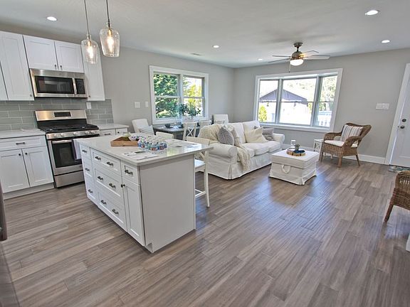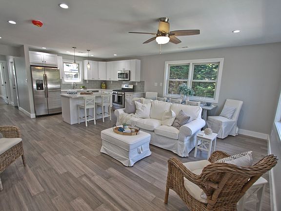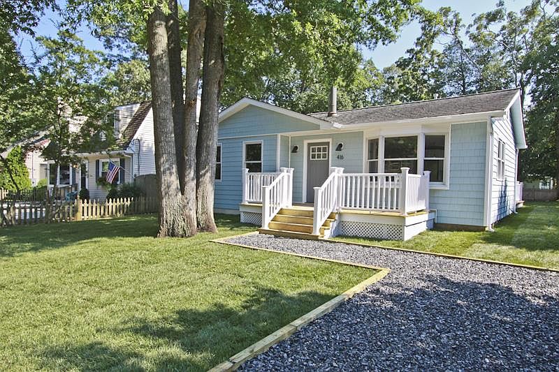 Welcome home! Located 1 block from the Delaware Bay, with beach access at the end of the street, this modernized ranch offers many interior and exterior upgrades. Greeted with an open concept, you will find a bright and airy living room and kitchen with a center island perfect for entertaining. Unique interior accents, such as a shiplap wall and a modern take on the sliding barn door trend, only enhance the quality of the other materials used throughout. Bamboo wood flooring, recessed lighting, 5 ½ base molding, and neutral beach tones offer a blank slate for any style. The fully upgraded kitchen features solid wood, soft-close shaker-style cabinets; quartz counter-tops; a stainless-steel appliance suite; and ceramic tile backsplash. The master bedroom has generous light, his and her closets, and an ensuite with marble flooring and a 6-ft soaking tub. Access to the side deck large enough for container gardening, entertaining, and grilling is adjacent to the laundry/utility room, where you will find the washer and dryer hookups and two ample-sized closets. Two additional bedrooms are of substantial size and share a full bath featuring penny tile flooring paired with a cottage-inspired vanity. This home also offers a brand-new, high-efficiency HVAC system with all new ductwork and an eco-friendly Nest Thermostat in addition to tankless on-demand hot water. Easy to show and move-in ready.