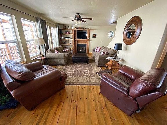 Nestled into the grassy hillside you will find this 2 story cabin that provides an upper and lower driveway with a walk-out basement. Outside you will find a covered wrap around porch that can be used for all seasons. The views are amazing and you will find yourself right at home! This cabin has hardwood floors, granite countertops, stainless appliances, 2 gas fireplaces/1 pellet stove and ceiling fans everywhere. There is a Main Bedroom Suite on the upper level that has a gas fireplace, jet tub, separate shower, double sinks, walk-in closet and views of the lake from every window! The other 3 bedrooms are spacious and will accommodate multiple beds. There is both a formal dining room and a eat-in kitchen area. The basement is wide open and has room for a living room and gaming areas. The driveway has room for numerous vehicles in both driveways and there is an RV spot with sewer and water. This home does have maintained streets in the winter and the year round activities include: golfing, boating, snowmobiling, skiing(Beaver Mountain is a short drive), hiking, biking, and ATV trails! The HOA membership includes access to golf discounts, tennis courts, outdoor pool and hot tub(seasonal). Please call or text to view this property.