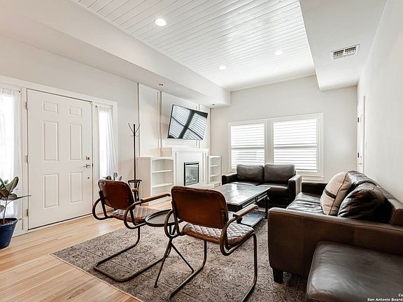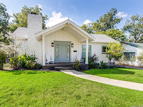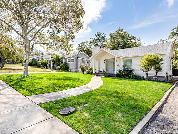 Charming Home Across from Mahncke Park. Nestled in a quiet neighborhood directly across from Mahncke Park, this home offers a wonderful view and a perfect blend of classic charm and modern updates. Inside, you'll find wood floors throughout, updated light fixtures, and an open-concept living, dining, and kitchen area highlighted by a ship-lap ceiling. The living room features a cozy fireplace framed by built-in bookcases, while the dining and kitchen areas showcase custom cabinetry. A stylish kitchen complete with an island and gas range, complemented by a decorative tile accent wall, offers both functionality and charm for everyday living and entertaining. The primary suite features soaring ceilings, custom blackout window coverings, and a versatile nook perfect for a home office or sitting area with direct access to a private patio. The en-suite bath has been recently updated with stylish tile flooring and a beautifully tiled shower, while the spacious walk-in closet completes this retreat-like space. Outside, enjoy a fenced yard with extra parking. Recent extensive foundation work comes with a transferable warranty, providing peace of mind. This home combines thoughtful design details with modern comfort in one of San Antonio's most sought-after locations.