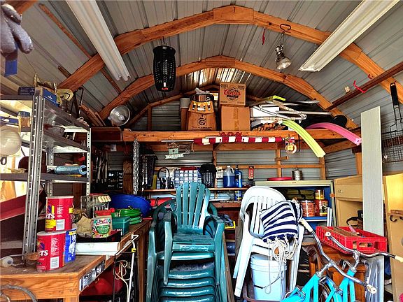 Family roomTree shaded covered deckMetal storage buildingUtility roomOpen eat-in kitchen