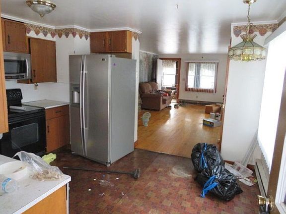 5 room, 3 bedroom, 1 bathroom ranch. Storage on the attic with pull down stairs. 1 car garage in the basement with the remainder as unfinished space. Large front enclosed porch. Located on a corner lot. Close to both the High School and Elementary/Middle School. Sold AS-IS