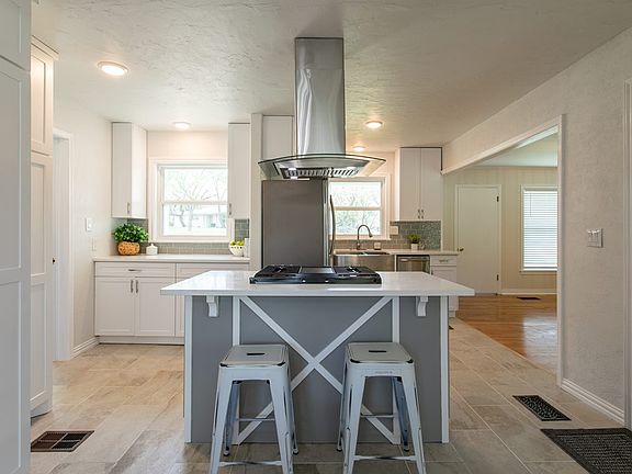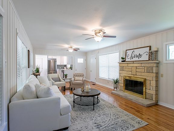 This mid-century home has received a beautiful and modern face-lift! Exterior painted stucco was added to complement the original stone work. All of the windows have been replaced, as well as the central HVAC system. Updates to the inside include freshly painted walls and trim, fireplace hearth, and electrical fixtures. The original wood floors were carefully revealed and refinished in the living area and two bedrooms. The kitchen now shines with beautiful floor and wall tile, quartz counters, modern soft close cabinetry, dishwasher, gas oven/cook-top and stainless steel vent hood and deep kitchen sink. The main bathroom has been updated with tile floors, tub and tiled surround, plumbing fixtures, and a quartz counter and cabinet unit. The roof was replaced in 2018. A prior owner added a third bedroom as an efficiency suite with bathroom, electrical connections for kitchen appliances, and separate entrances. This space would also make a great office, workshop, craft room or mudroom. This .32 acre property is located within walking distance to the popular Elm Creek and Schultz Parks. The washer/dryer and outside storage unit conveys. See virtual tour at bit.ly/416Methodist