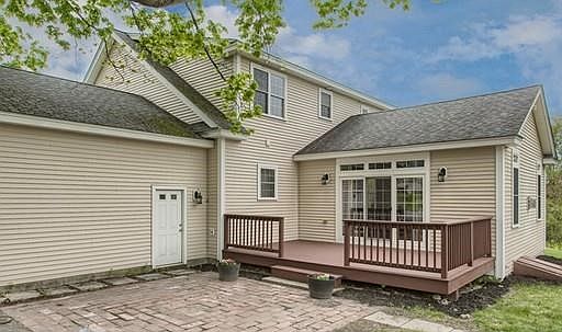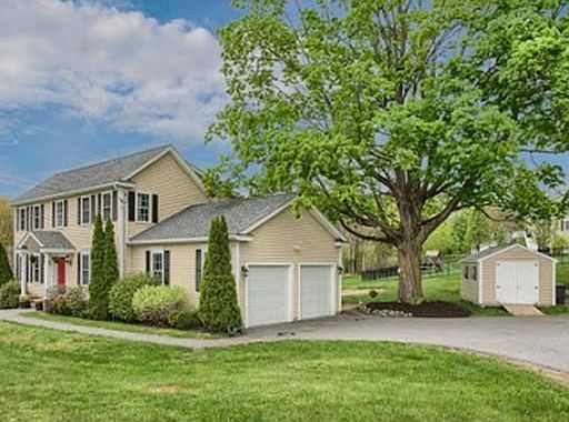 Beautiful 2006-built, 4-bedroom colonial with nice details, great open-concept layout and abundant storage. Hardwood floors/tile throughout first floor. Sunken family room with fieldstone fireplace, cathedral ceilings and two sets of sliders w transom windows is a showpiece. Large kitchen with 6-foot granite island with seating, lots of counter space and in-kitchen dining area as well as separate dining room w crown molding and wainscoting. First floor also has a formal living room (or could be an office or play space) with french doors and half bath with laundry. Second floor includes large en suite master bedroom with walk-in closet. Master bath has lots of storage and double vanity. Three additional bedrooms and another full bath with jetted tub. Oversized deck off family room and large patio shaded by a gorgeous maple tree overlooks generous yard abutting conservation land. 2-car garage and driveway with lots more parking. Easy access to Rtes 93 and 495. Schedule a showing today!