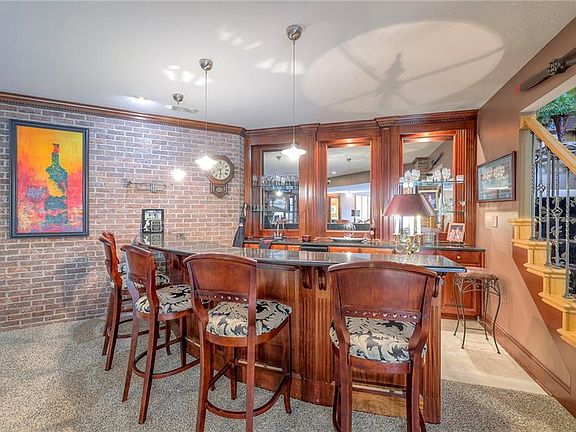 This stunning one-of-a-kind custom builder’s home sits on a private, beautifully landscaped lot surrounded by mature trees and natural views with a creek. Designed and built by the owner as a personal showpiece, every detail reflects craftsmanship and quality. Grand entryway with beautiful custom doors and built-ins. The formal dining and living rooms impress with 14- and 10-foot ceilings, faux-finished walls, and a fireplace with gas logs. The updated kitchen features custom curved cabinetry, quartz countertops, and high-end appliances including a Bosch dishwasher, double convection oven, warming drawer, Franke sink, and induction cooktop. A spacious laundry and hobby room just off the kitchen includes a sink and ample work area. Step out onto the deck to enjoy peaceful outdoor living and a private, wooded backdrop. The owners’ suite feels like you’re sleeping in a treehouse, offering tranquility and luxury with its grand ensuite bathroom. Enjoy the double vanity, walk-in shower with dual showerheads, whirlpool tub, and a large walk-in closet complete with a custom island and built-in dressers. The lower level is perfect for entertaining with a solid mahogany bar topped in granite, brick accents, and a game area with built-in pool table storage. Enjoy the cozy great room with surround sound and a brick fireplace with gas logs. Two spacious bedrooms each have private baths, and a fourth room—currently used as an office—has private exterior access, ideal for a home business. Walk out to the slate patio and firepit surrounded by professional landscaping, complete with irrigation, 21 mature pine trees, and 9 hardwoods. Additional features include custom plantation shutters, a grand circle driveway with cut stone front porch, and an oversized three-car garage with sink and epoxy flooring. This exceptional property perfectly blends craftsmanship, privacy, and comfort in a truly one-of-a-kind setting.