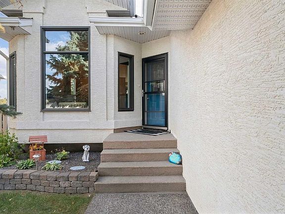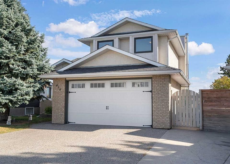 Veiw our virtual tour! Welcome to 416 Meadowbrook Bay SE, Airdrie. This beautifully maintained 1,843 sq. ft. 2-storey home is perfectly situated on a quiet cul-de-sac, offering peace, privacy, and unbeatable Prairie views. Backing directly onto a scenic walking/bike path, you’ll enjoy year-round vistas of Alberta’s rolling farmland, now alive with stunning autumn colours—and no homes directly behind you. Step inside to a warm, inviting interior featuring hardwood floors, elegant dark tile accents, and plush, meticulously kept carpets. The main floor boasts a spacious kitchen with clean white appliances, granite countertops, a tile backsplash, and plenty of natural light. Upstairs, discover three generous bedrooms, including a primary retreat with its own ensuite. The fully finished, large basement offers even more living space—complete with a bar area, a cozy wood-burning stove, and a bedroom with an egress window for safety and natural light. With 5 bedrooms, 4 bathrooms, and thoughtful updates throughout, this home is ideal for families. The front exterior offers a charming garden, wide driveway, and an attached double garage. Built with sturdy brick and stucco construction and topped with asphalt shingles, this home blends curb appeal with durability. Enjoy the family-friendly community of Meadowbrook—quiet streets, nearby parks, and easy access to East Lake via the walking path just steps from your backyard. This is more than a house; it’s the perfect place to call home.