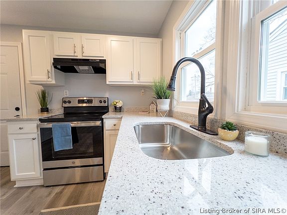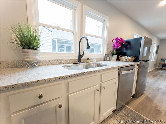 Welcome Home to this adorable charming abode that backs up to the Historic Ohio River Greenaway walking biking pathway. Enjoy fun walks and family cycling with views of the Louisville skyline and riverfront and appreciate the convenience of being just minutes from the interstate access and downtown Louisville/Jeffersonville, close to shops and dining. This open floor plan features a list of New Updates! Including new white stylish kitchen cabinets, Beautiful Polished Granite Counters, new sink, new faucets, New Appliances, updated new bathroom vanity, commode and tub/shower, new floors, fresh paint throughout, new doors, new windows, new trim, new roof, new hot water heater, a new deck, covered front and back porch for your outdoor relaxing needs. There is also an outbuilding behind the home that can be used for a workshop or garage. And a bonus fenced in yard. Call today to schedule your appointment for this move - in - ready affordable home before it is pending!