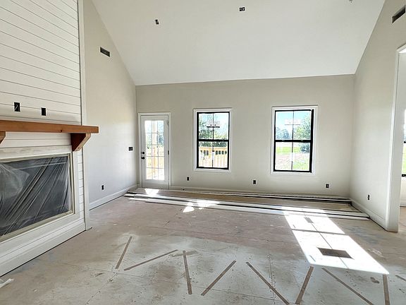 Step inside to a welcoming entryway with a convenient coat closet. The open-concept living room and kitchen flow together seamlessly, highlighted by a stunning floor-to-ceiling fireplace and durable LVP plank flooring throughout the living area, kitchen, and hallway. The modern kitchen features quartz countertops, an island with extra seating, and a dining area that overlooks the backyard. This split-bedroom floor plan offers privacy. The master suite boasts tray ceilings, two walk-in closets, and a luxurious bath complete with a soaking tub, separate shower, and double vanities. 4 Bedrooms + A large bonus room with full bath + closet(or 5th bedroom). Enjoy your mornings or unwind in the evenings on the covered back porch, offering peaceful views and a touch of nature.