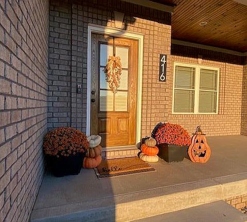Beautiful 3 Bedroom 2.5 Bath brick ranch with unfinished walkout basement & two car attached garage situated on .42 acre lot in the Rowan Hills neighborhood. Home offers a desirable open concept floor plan. Many upscale custom features including engineered hardwood floors, vaulted ceilings, crown molding, stained beams, custom trim, wainscoting & built in shelving. Vaulted Living Room with cozy fireplace flows into the eat in Kitchen with 8 ft island, granite countertops, stainless appliances, in-set cabinets & range hood. Nice Laundry room with mud sink & custom cabinets. Vaulted Primary suite with tiled Primary Bath offering a huge walk-in closet, double sink vanity, free standing soaker tub & tiled walk-in shower. Two additional bedrooms & full Bath complete the main level. Full unfinished basement can be finished to your specifications, has rough in plumbing & storage galore. Outdoor amenities include a covered front porch, lower-level patio, lower-level utility garage as well as covered rear deck overlooking the large back yard & offering scenic views. Located near all the amenities of historic Bardstown, Ky. Call today for your personal tour of this amazing home.