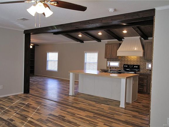 Late model Double-wide sitting on almost 5 acres. This is a 2014, with finished sheet rock in the living areas, it has huge island with vaulted ceiling, wood beams, and recessed lighting. Home is 4 bedroom 2 bath with large covered deck in the rear. It has a cute little red barn (may need some work). It also has it's own indoor dog washing station. It you are looking for a little room to spread out, at a great price this could be the one.