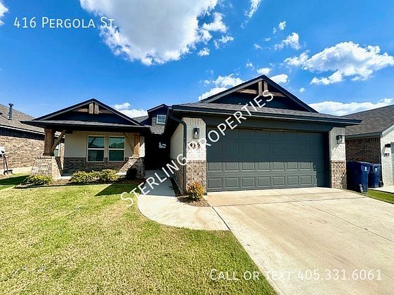 BEAUTIFUL HOME in the Skyline Trails community in South Yukon. OKC utilities, Mustang school district. Open floor design with the master suite to the front of the home. Secondary bedrooms to the opposite side of the home down off to the side. Open floor design with kitchen/dining overlooking the living area. Wood look tile throughout the main areas with carpet in the 3 bedrooms. Drop zone off the garage entry with a separate utility room by the secondary bedrooms. Covered back patio with fenced yard, pet friendly with additional refundable pet deposit. Community amenities for your enjoyment include soccer field, splash pad and playground. Conveniently located off Cemetery and Reno Ave with access to shopping and dining along Garth Brooks Blvd and I-40.