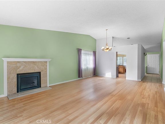 Step inside to a bright and open living room with vaulted ceilings, laminate flooring, and a cozy fireplace—the perfect spot to gather or unwind at the end of the day. The kitchen offers plenty of storage and counter space, while the adjoining dining area is framed by large bay windows that fill the space with morning light.