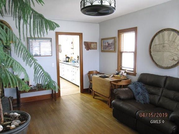 Nice older home in great condition with original hardwood floors and a huge detached double garage and an additional single garage for storage. The basement is finished with a laundry room, bedroom, full bath and family room. Main floor has the original hardwood in most rooms with newer flooring in kitchen and bath. There is a beautiful patio with a finished man cave/she shed adjacent. Shed has a freestanding wood stove for heat. The home and garages sit on two lots in a great neighborhood with views of Makoshika State Park.