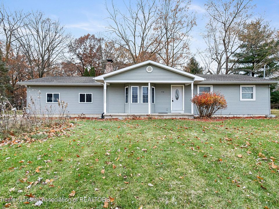 Welcome to 416 Riverview, a beautifully updated ranch home offering lake access at Lake Genevea, nearly a half-acre of elbow room, and a peaceful setting tucked among mature trees. This one checks all the practical boxes and the pretty ones. Step inside to a spacious living room featuring a sunny bay window and a classic brick fireplace that anchors the space with warmth and charm. The floor plan flows into the dining area and the updated kitchen, complete with rich dark-stained cabinets, newer counters, refreshed flooring, and plenty of storage. A large walk-in pantry and a convenient half bath sit just off the kitchen. All three bedrooms are located on the main floor along with a full bath, making everyday living simple and functional. The lower level offers even more flexibility with laundry and a finished private room—ideal for a quiet home office, hobby space, or anything else your life demands. Major improvements have already been handled: a brand-new furnace and A/C within the last year, added attic insulation, and a new well in 2019. The location is a standout—DeWitt Schools, lake access, and a serene natural backdrop without giving up convenience. A smart buy in an unbeatable setting