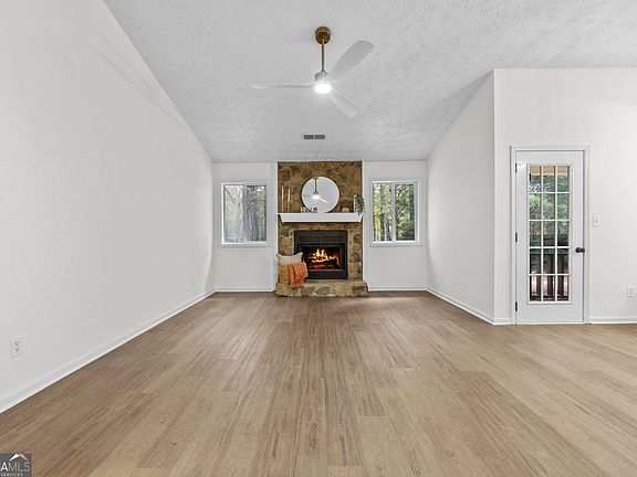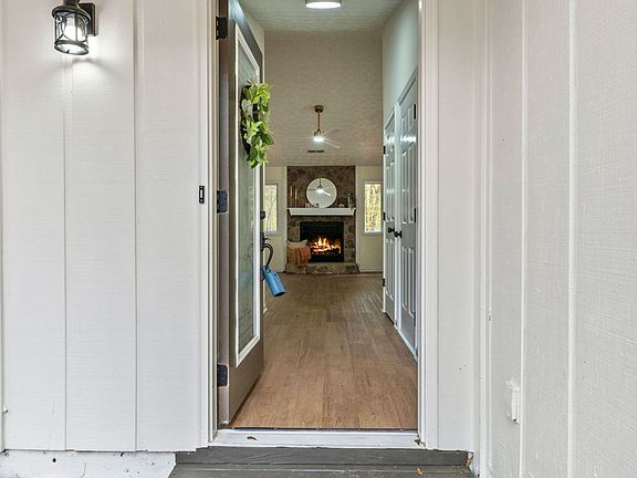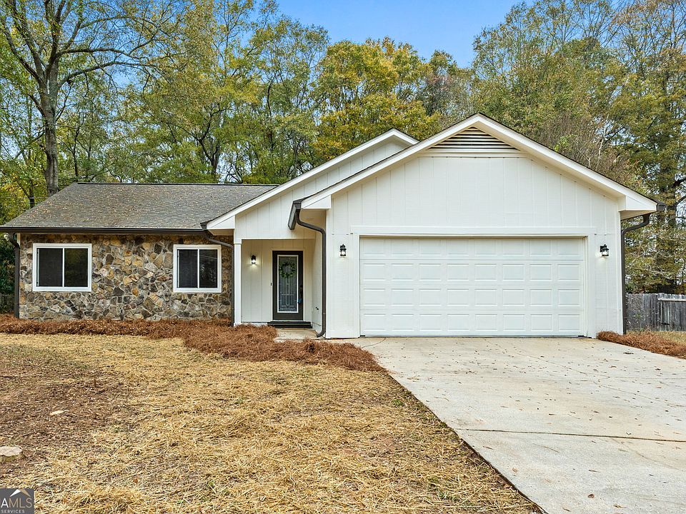 Welcome to 416 Rockaway Rd! This beautifully updated 3-bedroom, 2-bathroom single-level ranch offers modern style, thoughtful upgrades, and an unbeatable location. The exterior has been freshly painted and features charming stone accents, brand-new gutters, downspouts, and upgraded exterior lighting for standout curb appeal. Inside, the open-concept kitchen has been refreshed with newly painted cabinets, modern hardware, quartz countertops, stainless steel appliances, and a convenient breakfast bar-perfect for casual meals or entertaining. The living room centers around a stunning fireplace that serves as the focal point of the space. Both bathrooms have been upgraded with new vanities, mirrors, and updated lighting. The master suite includes a beautifully tiled walk-in shower with sliding glass doors. The master bedroom offers double French doors that open directly to the backyard. Enjoy the outdoors on the covered back porch overlooking a generously sized yard-ideal for relaxing, gardening, or play. Located just a 5-minute golf cart ride from historic downtown Senoia, you'll have easy access to restaurants, shops, and entertainment. This move-in-ready home combines comfort, convenience, and modern charm in a prime location. Schedule your showing today!