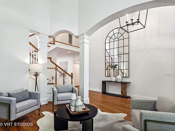 SIMPLY SPECTACULAR! Nestled in the highly coveted EAST HIGHLANDS NEIGHBORHOOD within the prestigious Naperville 203 School District-serving Highlands Elementary, Kennedy Jr. High, and Naperville Central High School-this exceptional home boasts over 5,377 SF of luxurious above-grade living space (7,791 total SF). You'll be captivated by the welcoming front porch and the home's open floor plan with HARDWOOD FLOORS and SOARING CEILINGS. The STUNNING KITCHEN, adorned with white cabinets, quartz countertops, and a welcoming three-sided fireplace, seamlessly opens to the breakfast and great rooms-perfect for both EVERYDAY LIVING AND ENTERTAINING. The main floor also includes a HOTEL-LIKE LIVING ROOM, an elegant dining room, and a private, versatile office/homework/playroom. The entire home is painted a clean and calming white. A large mudroom off the garage keeps everything organized, while the THREE-CAR tandem garage offers ample space for vehicles and storage. The PRIVATE, FENCED BACKYARD OASIS features an outdoor fireplace and mature trees-ideal for escaping and entertaining. Upstairs, the beautiful PRIMARY SUITE serves as a sanctuary of relaxation with vaulted ceilings, a sitting area, and two walk-in closets. The fully remodeled primary bathroom exudes a SPA-LIKE AESTHETIC with a luxurious free-standing soaking tub. The second floor also includes three additional bedrooms, a jack-and-jill bathroom, and a full hall bath. The home continues with a third-floor 5th BEDROOM RETREAT, complete with a full bath, can also serve as au pair quarters, a playroom, or a guest suite. The full, finished basement is a family's dream, featuring a theater room, a workout area, spacious family room, a wine room, ample storage space, and a full bath. Floor Plans under Additional Information. Don't miss the opportunity to own this truly remarkable home!