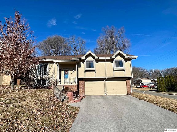 Now offering $2,500 towards buyer's closing costs/ interest rate buy down! Welcome home to this unique split entry, located on a quiet cul-de-sac backing to wooded lot & stream! Walking through the front door you will notice the vaulted ceilings, newer flooring, & updated light fixtures making this a great place for friends & family to gather! The kitchen features stainless appliances, updated lighting and breakfast nook. The primary bedroom includes a walk in closet, 3/4 bath & private balcony to enjoy your morning coffee! 2 beds and a full bath complete the main floor. The lower level family room includes a wet bar. New vinyl windows throughout & two composite decks to enjoy the stunning views of the tree's that line the back of the property give you the feeling you are in the country while being close to Offutt, restaurants & more! Hurry home!