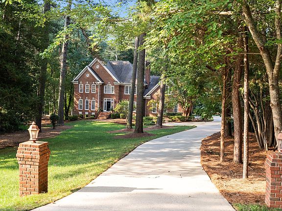 Custom built estate home on almost 2 acres. A nature lovers dream! Fantastic community offers clubhouse, pool, tennis & lake. Additional detached 2 car garage w/functional rec room/office above. Main fl guest suite w/ full bath. Elegant Formal living & dining rms/perfect for holiday gatherings! Extensive custom trim work throughout. Grand owners' suite features vaulted ceiling, sitting rm & spa bath w/oversized shower, soaking tub & heated floors! Sun rm & screened porch offer options to enjoy some beautiful NC weather or sit outside on the low maintenance Trex deck or brick patio w/fireplace! And the show stopper of this home has to be the gorgeous chef's kitchen boasting vaulted beamed ceiling, center island, tile backsplash, granite countertops & custom cabinetry.