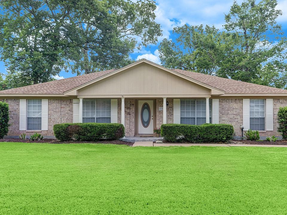 pacious home on 1/3 of an acre w/ BONUS Flex Room OR Guest Suite w/ wonderful skylight & separate entrance. Currently serves as the children's playroom. Excellent layout with formal LR & DR connected to ample Kitchen/Breakfast area and Family Room. Main & Flex rooms boast beautiful wood custom cabinetry. Lots of natural light throughout w/ ceiling fans in every room. Large primary BDRM w/ sitting area and ensuite bath including jetted tub and walk-in closet. Garage connects to utility room via protected covered patio. Oversized backyard w/ storage shed and room for a pool or soccer game! Never flooded. Easy access to Hwy 288 & 2004 and all Lake Jackson shopping. Walking distance to Shy Pond. Very close to top-rated Bess Brannen Elementary and LJ Intermediate schools. MUST SEE to appreciate all this home has to offer.