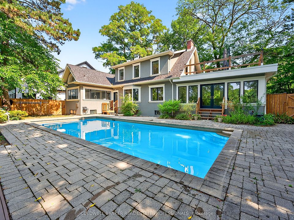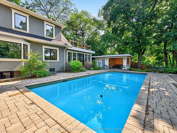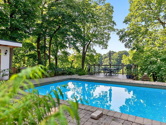 One-of-a-Kind Waterfront Masterpiece in Old Oakville - Now at an Exciting New Price! Rarely offered and truly irreplaceable, this resort-style waterfront retreat blends the natural beauty of Muskoka with the walkable convenience of downtown Oakville. Set along the tranquil banks of Sixteen Mile Creek, this fully renovated character home offers over 3,650 sq.ft. of luxurious living space on a sprawling 90 ft lot with direct water access. Arrive in style via the grand circular driveway (parking for up to 6 cars) with space to add a double garage if desired. Embrace a true waterfront lifestyle - launch your kayak, fish, or swim all summer long; skate, snowshoe, or cross-country ski in winter. Nature is your playground year-round. Inside, timeless charm meets modern sophistication. Heated porcelain floors warm the bright front sunroom, while elegant living and dining areas feature cozy fireplaces and panoramic nature views. The Scavolini chef's kitchen impresses with premium Gaggenau appliances, quartz countertops, vaulted ceilings with exposed beams and a sunlit breakfast nook. Upstairs, the private primary retreat feels like a luxury suite, complete with a spa-like ensuite, custom built-ins and a rooftop terrace overlooking the valley. The adjoining deck offers large potential space to enclose for an additional bedroom, studio, or home office - a rare opportunity for future flexibility. A second bedroom with its own ensuite ensures comfort for guests or family. The walk-out lower level features a cozy den, guest bedroom(s), sauna and direct access to the backyard oasis. Outdoors, enjoy a heated concrete pool, ambient-lit lounge zones and multiple decks for entertaining. Newly engineered concrete stairs lead to a lower waterfront deck built to last for decades.All of this just steps from downtown Oakville, top schools, marinas, Wallace Park, restaurants, and the GO Station.Showings welcomed with 24 hrs notice.