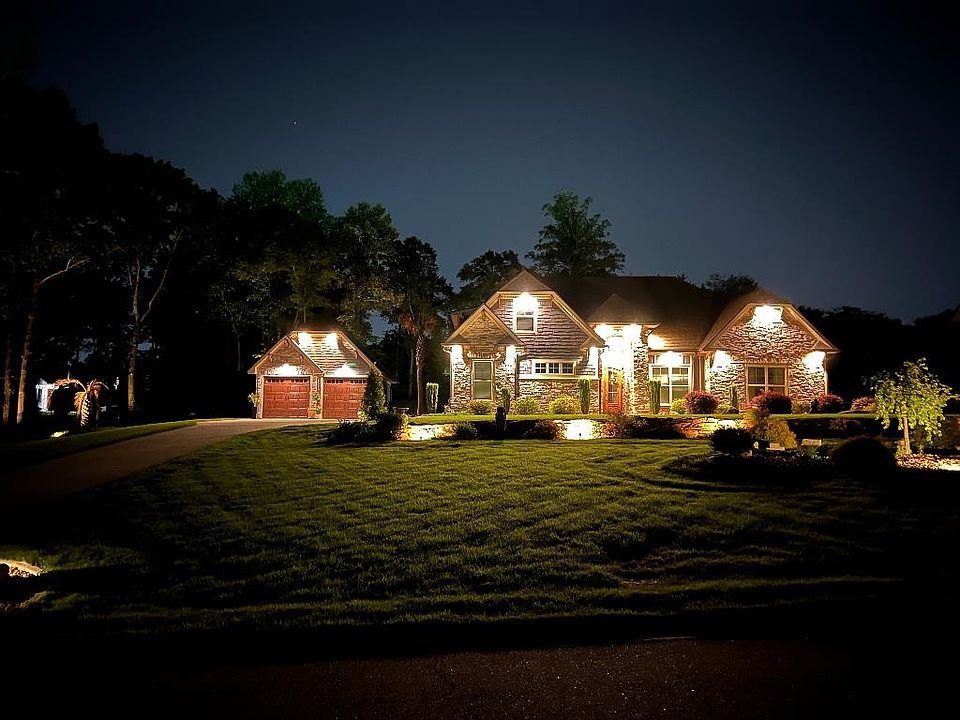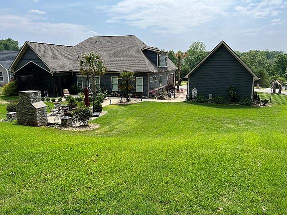 Beautiful 5 bedroom 3.5 bath with a 4 car garage with 8' doors home on over 1 acre. 2 inside gas fireplaces, 1 outside gas fireplace on separate outdoor patio. Screened in patio leads to the spacious back yard which backs up to woods. Bosch refrigerator and oven under 1 year old. Home comes with extra 1/2 acre lot next door ( lot 129 ). The entire acre is irrigated, sodded, fully landscaped and low voltage lighting illuminating all of the property. Back yard is all fenced in. Security system, security camera's. The house sitting well above street level grade. Public water, sewer, high speed internet and natural gas. Close to all shopping and only 8 miles to GSP airport. Private neighborhood that only has 1 street which dead ends at the lake.