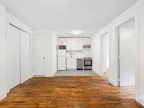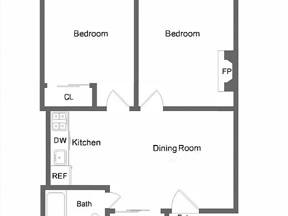 The apt features an upgraded kitchen and a newer full bath. High ceilings, hard wood floors, a decorative fireplace, huge windows. Both bedrooms will easily fit a queen bed, a desk and a dresser. They each have windows, but only one has a closet, but there is plenty of room for a dresser and armoire in this bedroom