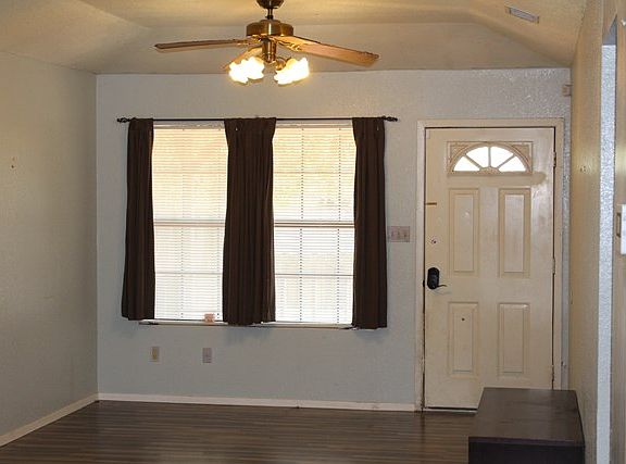 Charming three bedroom, two bath home in Uvalde on a corner lot! The exterior features large shade trees, fenced all the way around. Open the front door and notice the open living and dining area. Nice size master bedroom with a walk-in closet. One car attached covered carport with plenty of parking. This is a perfect first home for someone. It would also make a great rental.This property offers several possibilities. Don't miss out! Must independently verify for accuracy on square footage.