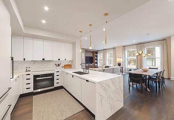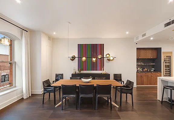 This luxurious and incredibly spacious loft is in pristine condition, thoughtfully updated to create an exquisite and refined home. One enters the space through an elegant entry foyer which leads into the expansive North facing living/dining great room, highlighted by 10' ceilings and massive arched windows. The open and updated kitchen features Neolith countertops, Miele induction stove, Subzero refrigerator, Miele dishwasher, plus a 154-bottle wine cooler and bartender's pantry. Continuing on from the kitchen, you will find a roomy den with floor to ceiling glass pocket doors, so the entire room can be enclosed for privacy or open to the living area for additional entertaining space.